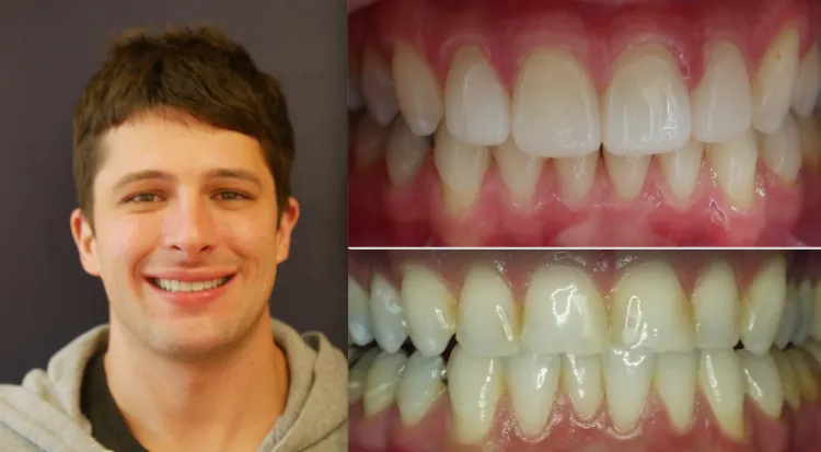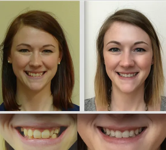Top Right: Post-op after Invisalign and Upper Veneers / Bottom Right: Pre-op photo